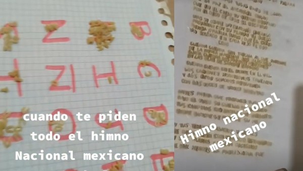 De acuerdo con el video, la niña tenía que escribir todo el Himno Nacional con la pasta para preparar la sopa de letras.