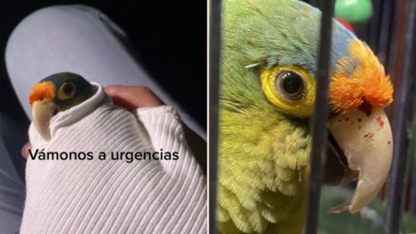 Mediante la cuenta de TikTok @coquitoperiquito, la dueña del ave relató que días atrás lo encontró con el pico sangrando. De inmediato limpió la sangre, pero explicó que “se veía triste y decaído, le costaba respirar”.