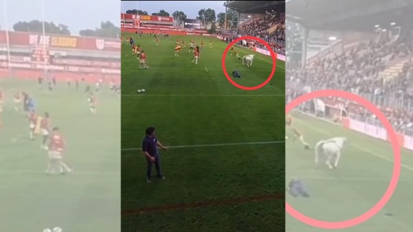 El animal es mascota del equipo de St. Helens por lo que fue llevado por su cuidador a la cancha para dar una vuelta por la misma y así darles suerte a los deportistas.Pero minutos antes de ser sacado del lugar, se escapó, dándole una arrastrada a su cuidador, para posteriormente empezar a perseguir a los jugadores que tenía uniforme de color rojo. Al ver esto, los deportistas comenzaron a correr logrando evitar ser embestidos por el toro. Por lo que, afortunadamente, nadie resultó herido.Increíble pero a alguien pensó que era buena idea meter un Toro a un campo de juego