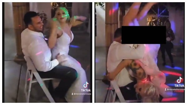 Debido al alcohol que había tomado, la novia le hizo un baile de silla a su novio, o lapdance.