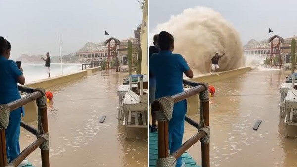 VIDEO: Captan cuando gigante ola se ‘traga’ a turista y testigos gritan alarmados