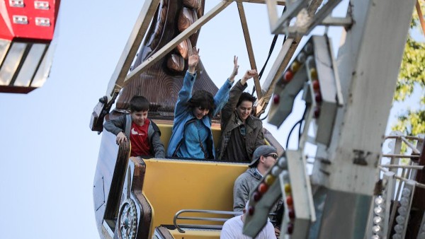 En el metraje, Darwin y un amigo se embarcan en un juego mecánico en el parque de atracciones.