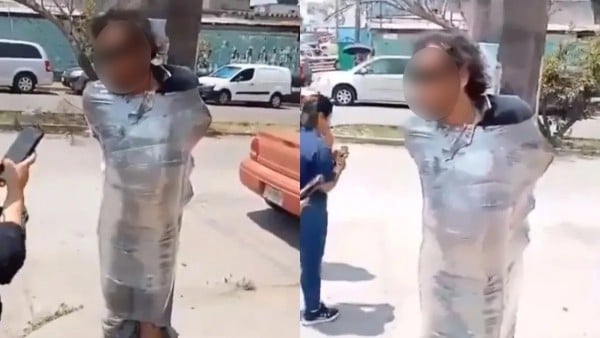 Xalapa, Veracruz - Un presunto ladrón de identidad desconocida sufrió la ira de los pobladores de Xalapa luego de que lo sorprendiera en pleno robo, por lo que lo capturaron, lo golpearon y lo ataron a un poste de luz con plástico para emplayar.