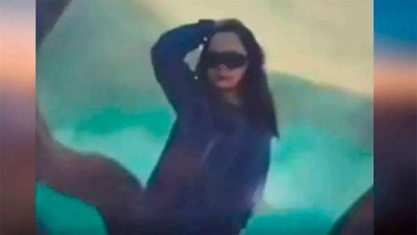 En la imagen, se observa a Lihong aparentemente posando con la pierna levantada y nubes de gas azufre detrás de ella.