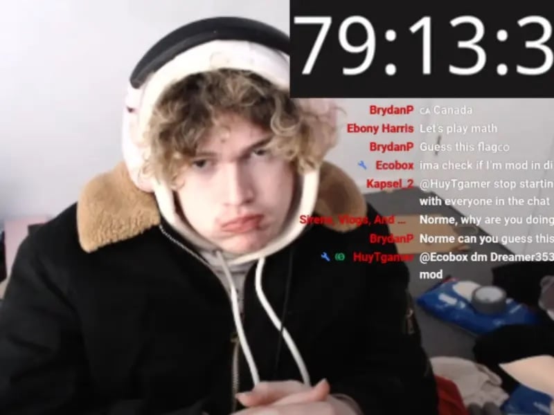 Finalmente, el ya muy debilitado joven transmitió en Rumble para intentar romper el Récord Guinness en horas despierto en vivo, pero algo inesperado sucedió.