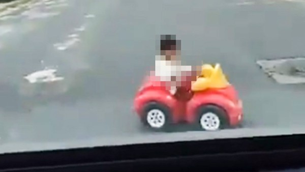 Coacalco, Estado de México - Un video viral muestra a un niño de aproximadamente 3 años cruzando una concurrida avenida de varios carriles y doble sentido a bordo de su carrito de juguete rojo y amarillo, mientras es perseguido por una mujer, que aparentemente sería su madre o su abuela.