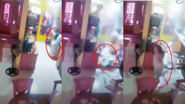 El impacto fue tan fuerte que los utensilios y otros elementos de la cocina se dispersaron por toda la habitación, y la mujer cayó al suelo debido a la fuerza de la explosión. Visiblemente asustada, la mujer se levantó y corrió fuera de la cocina mientras gritaba de pánico, momento en el que un hombre entró corriendo para evaluar los daños.