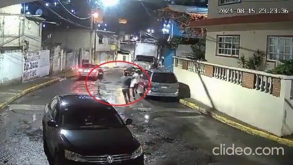 El hecho se registró recientemente en las calles del municipio de Naucalpan, por la noche, y quedó grabado en las cámaras de seguridad de la zona.