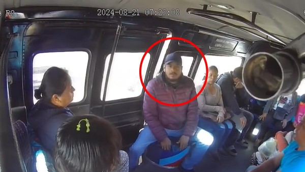 En las imágenes se observa como dos individuos suben a la camioneta, pagan su pasaje y se sientan. Sin embargo, uno de ellos sacó un arma y comenzó el atraco.