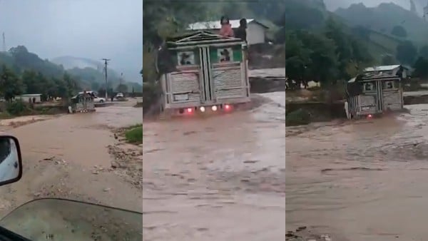 Aunque al principio parecía que lograría atravesar la corriente, la camioneta fue arrastrada y quedó atrapada en un vado, imposibilitada de avanzar o retroceder.