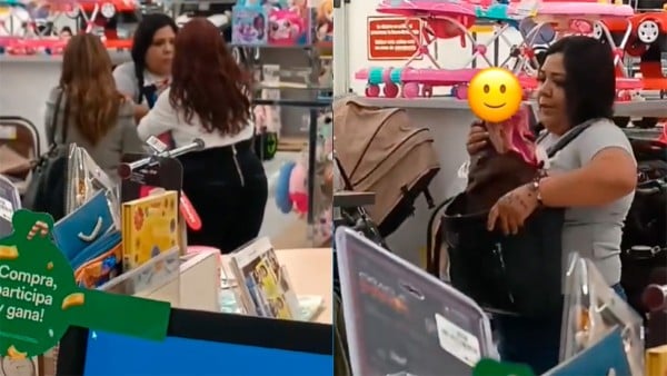 Según el video publicado en TikTok, empleados de la tienda descubrieron que las mujeres escondieron varias prendas en un bolso.