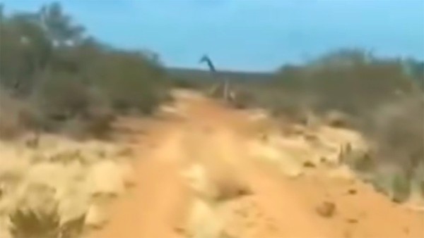 Tres jirafas fueron vistas corriendo en una brecha en los límites de Coahuila y Nuevo León, sorprendiendo a los oficiales