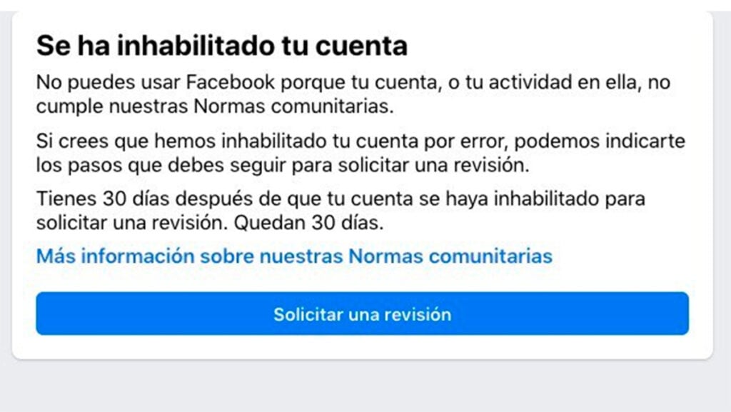 Si consideras que el bloqueo de tu cuenta es un error, Meta ofrece opciones de apelación: