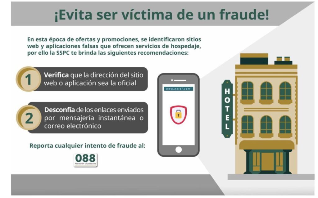 La Secretaría de Seguridad y Protección Ciudadana (SSPC) ha lanzado una advertencia sobre el incremento de fraudes en sitios web y aplicaciones falsas de hospedaje durante las vacaciones.