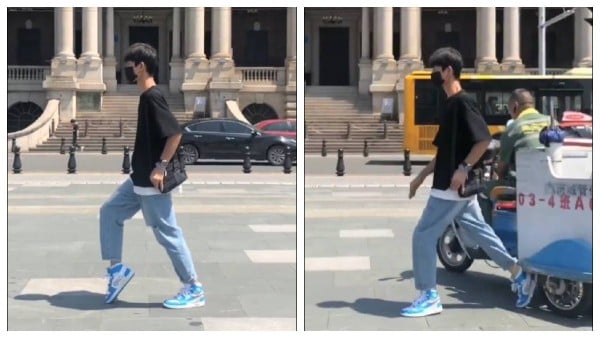 En el video, que rápidamente se viralizó en la red social, se ve a un joven con cubrebocas practicando una caminata hacia atrás, como