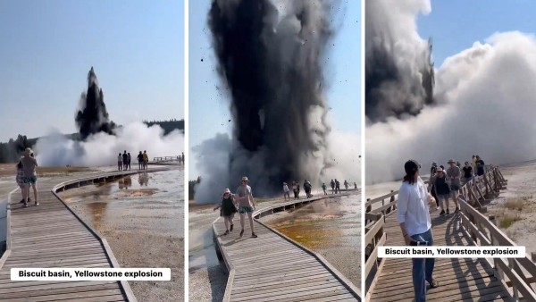 Estados Unidos - Una fuerte explosión registrada en el turístico Parque Nacional Yellowstone causó alarma entre los visitantes, quienes salieron corriendo del sitio.