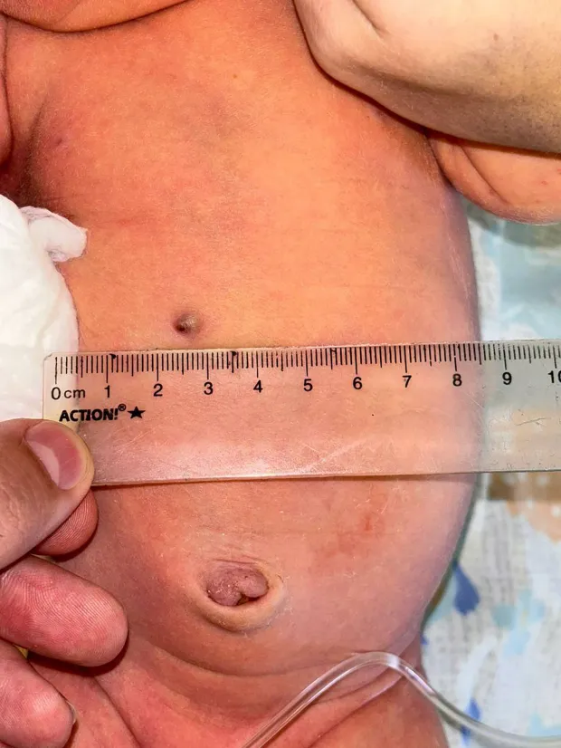 Poco después del alumbramiento, los doctores sometieron a la recién nacida a una intervención quirúrgica para extraer el perdigón de su área abdominal.