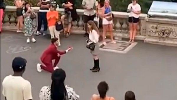 Un hombre, deseoso de sorprender a su novia con una romántica propuesta, se arrodilló con un anillo en la mano, solo para ver a su amada huir despavorida del lugar.