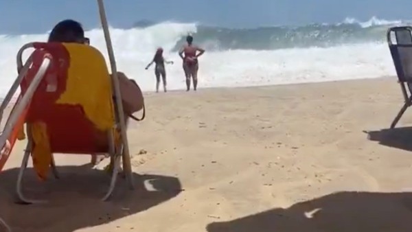 Brasil - Una ola de casi 4 metros causó un momento de pánico entre decenas de vacacionistas que disfrutaban un día cálido en Río de Janeiro.