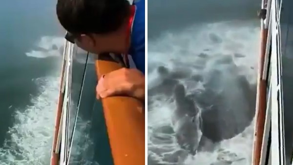 La criatura es tan grande que incluso parece casi del mismo tamaño que el barco, y el video se corta antes de que se pueda apreciar por completo qué es lo que hay debajo del agua.