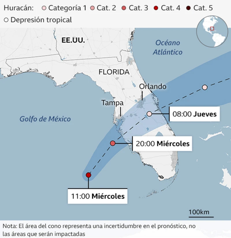 Esto sucede mientras las autoridades alistan los últimos preparativos principalmente en Tampa Bay, donde Milton impactará la noche de este miércoles como un huracán “potencialmente mortal”, según advirtió el Centro Nacional de Huracanes de Estados Unidos (NHC, por sus siglas en inglés).