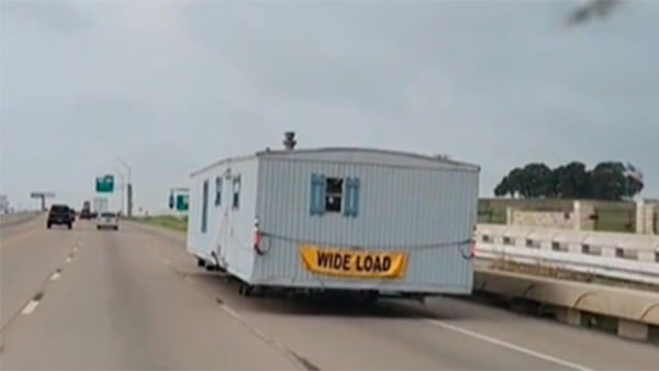 En medio de esta amenaza, el hombre grabó el momento en que su casa rodante era remolcada por una grúa sobre la carretera, mientras él la seguía desde otro vehículo.