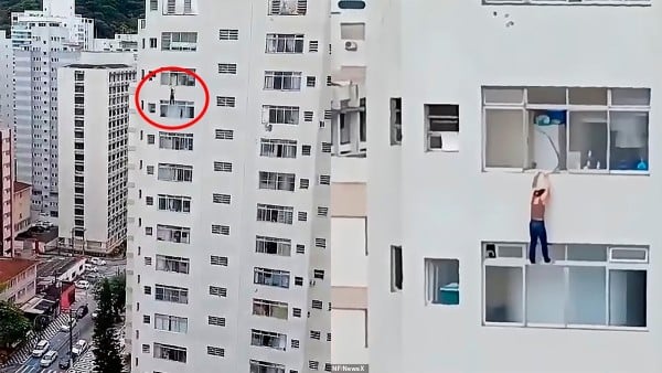 Brasil- Un video impactante que muestra a una mujer colgada del piso 16 de un edificio de apartamentos en Guarujá, Brasil, se ha vuelto viral en redes sociales.