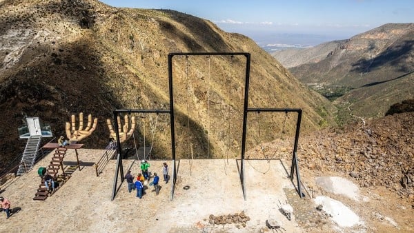 Real de Catorce, San Luis Potosí - Una joven regiomontana, identificada como Alessia, sufrió un accidente en la atracción conocida como "columpio extremo" en Real de Catorce, mismo que quedó grabado en video y se hizo viral en redes.