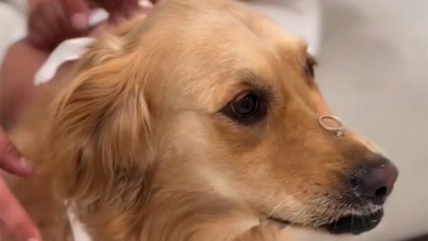 Sin embargo, lo inesperado ocurrió: en un pequeño descuido, el perro se tragó el anillo, dejando a todos los presentes atónitos. El video se corta justo en ese momento, lo que ha generado aún más intriga entre los espectadores.