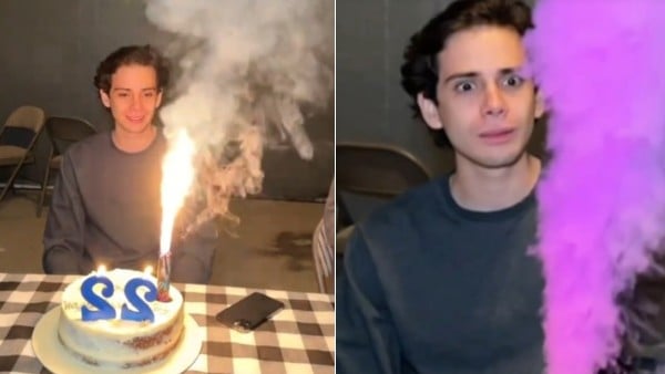 Sin embargo, de un momento a otro, la vela se apagó y comenzó a lanzar humo de color rosa, con el que su novia le hizo creer que estaba embarazada.