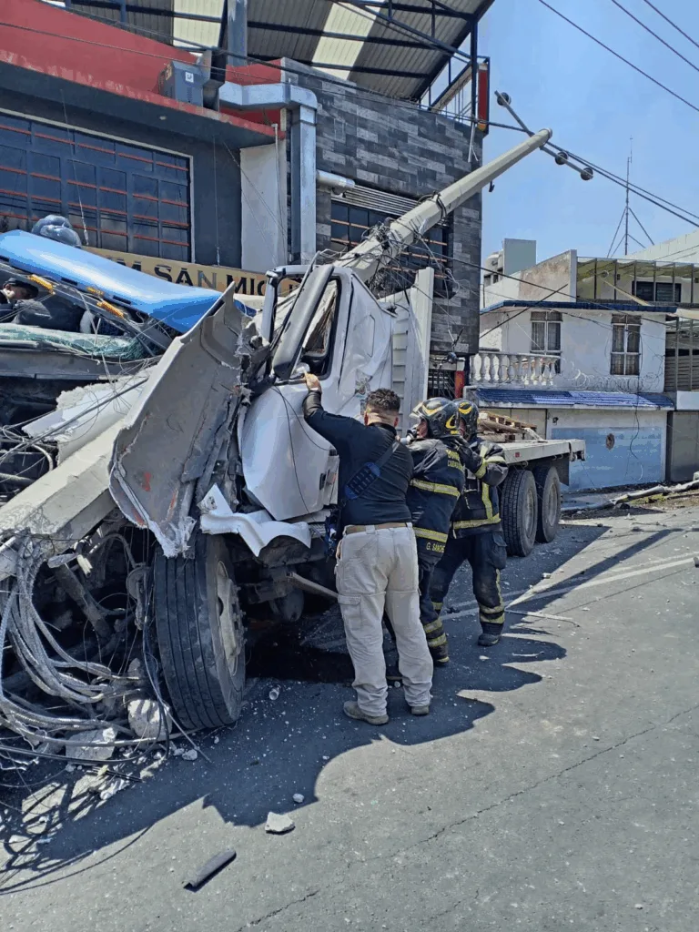 Ciudad de México— Un aparatoso accidente se registró al mediodía de este sábado en la alcaldía Gustavo A. Madero, donde un camión de carga se impactó contra un poste de luz, dejando como saldo al conductor prensado y una familia con un severo susto.