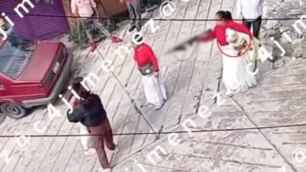 Naucalpan, Estado de México - Vivimos en México mágico: una escena perturbadora se captó por las cámaras de una casa cuando varias personas participaban en una riña campal, pero lo más asombroso fue una mujer que con la mano derecha amenazaba con un arma larga y con la otra mano ¡sostenía a un bebé!