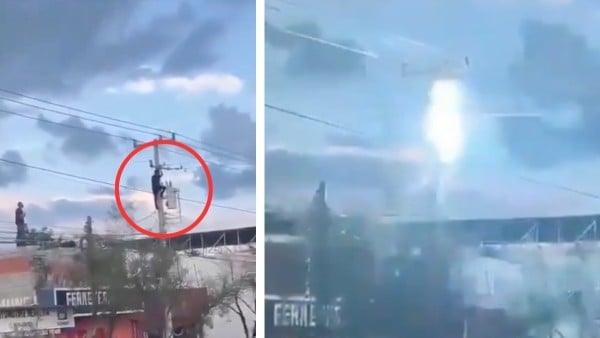 En redes sociales ya circula un video del momento exacto del accidente donde se ve que el hombre sube por un poste y de repente aparece un destello muy fuerte de luz.
