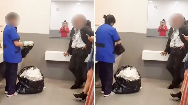 VIDEO Por esta razón obligan a empleada de limpieza a revisar los papeles sucios del baño