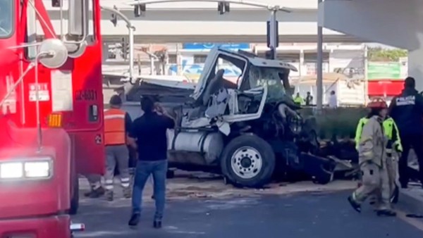 De acuerdo con medios locales, el conductor de la pipa perdió el control cuando circulaba sobre el puente, lo que provocó que cayera por un costado y sobre los cuatro autos que estaban en la parte inferior: un taxi y tres automóviles particulares.