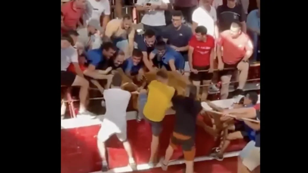Durante un festejo taurino en Cadreita, España, un toro saltó desde el ruedo hasta el graderío, desatando pánico entre los presentes.