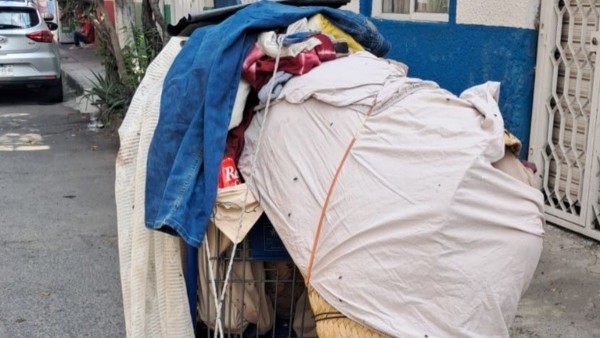 El reportante avisaba que cerca de las 06:00 alguien había dejado un carrito con basura, lonas, un petate y sábanas, y que cuando le prestaron atención se dieron cuenta de que se alcanzaba a ver un pie.