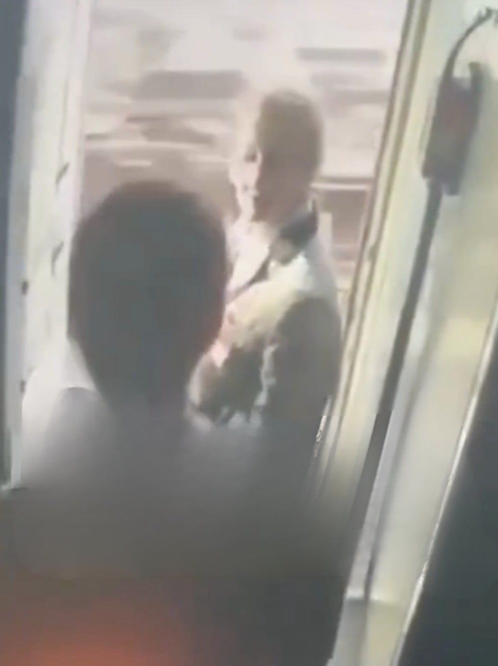 En las imágenes se observa cómo el hombre discute con la empleada, aparentemente porque no se le permitió descender para fumar durante la parada.