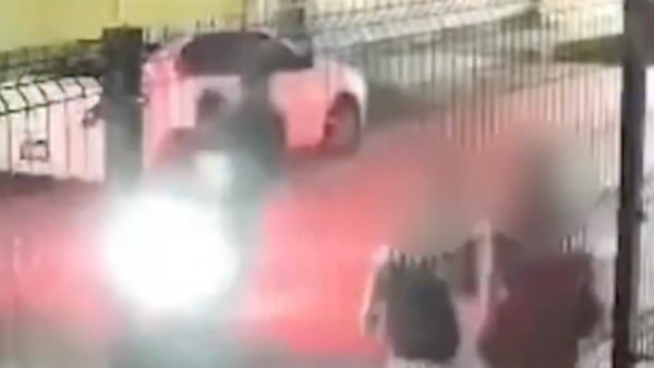 Las grabaciones de cámaras de seguridad muestran que uno de los agresores descendió y forcejeó con una de las víctimas para despojarla de su bolso.