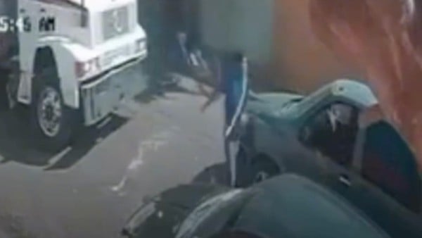 Las imágenes muestran cómo la unidad cisterna avanzaba hasta encontrarse con una camioneta particular que obstruía el paso, lo que originó la confrontación.