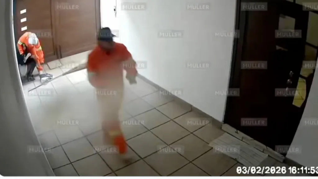 El video muestra cómo dos de los implicados se colocaron estratégicamente frente a la vivienda. Vestían ropa naranja con reflejantes, llevaban herramientas de limpieza y actuaban como si formaran parte del paisaje urbano: uno barría la banqueta, el otro esperaba apoyado en un auto.