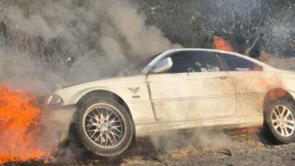 Calpan, Puebla - Un hombre fue ejecutado con arma de fuego y su cuerpo incendiado al interior de su automóvil de lujo.