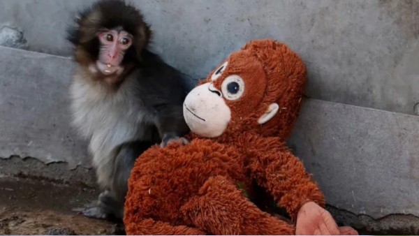 🇯🇵🐵 Monito de un zoológico japonés encuentra consuelo en un peluche