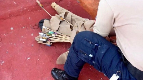 A pesar de tener la mano vendada y con solo dos dedos funcionales, el joven decidió seguir lanzando pirotecnia, esta vez una batería de fuegos artificiales colocada en el suelo.