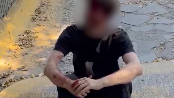 El joven, quien no domina el idioma español, logró salir caminando hasta la entrada del camposanto, visiblemente desconcertado y herido.